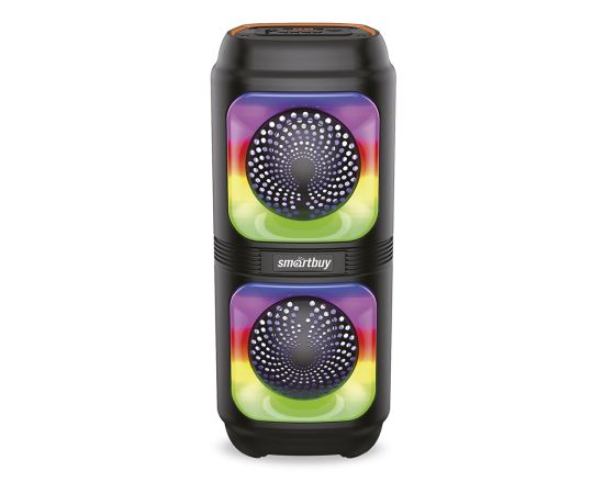 Smartbuy PHOENIX – это в меру компактная, громкая , яркая портативная колонка c фазоинвертором на задней панели. В комплекте Smartbuy PHOENIX идет проводной микрофон – да, с этой колонкой вы можете петь караоке! Весь стандартный для отрасли набор функций упакован и вложен внутрь девайса: Bluetooth, FM-радио, MP3-плеер способный воспроизводить с носителей объемом до 256 Гб (USB-флеш и MicroSD), динамическая RGB-подсветка, караоке. И да, эту колонку тоже можно объединить в стерео пару для удваивания мощности!