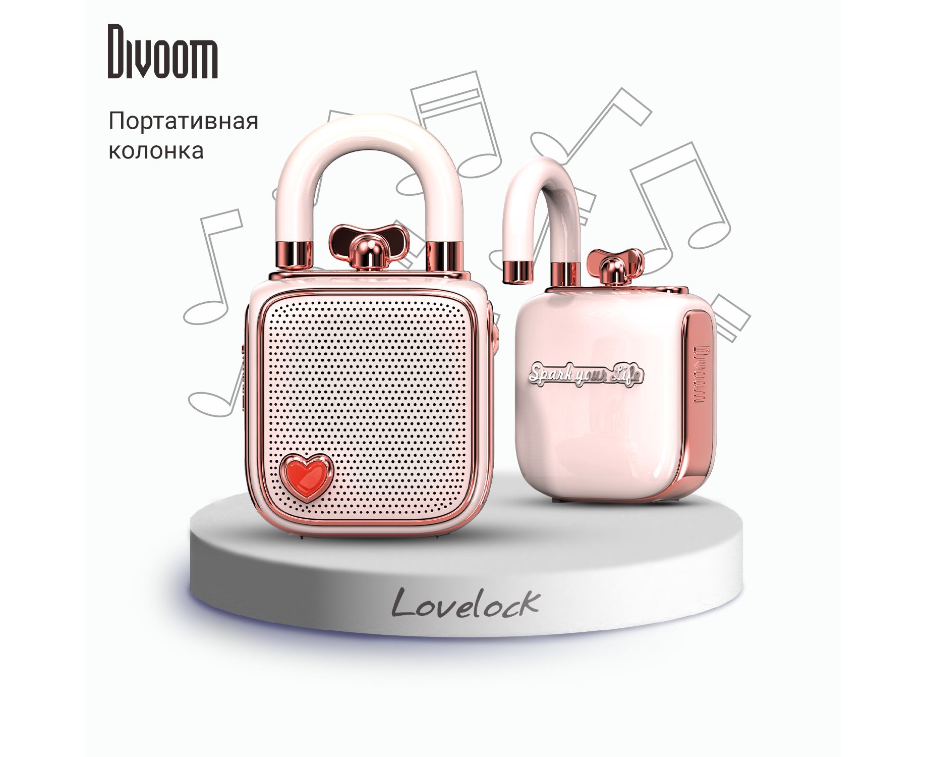 Портативная колонка Divoom LoveLock розовая