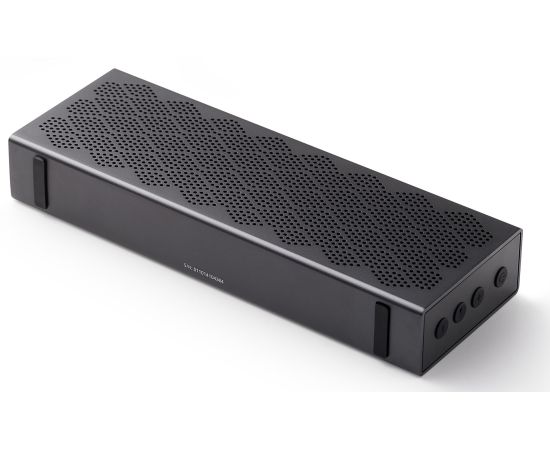 Материал корпуса из алюминия, встроенный усилитель класса G, двойные 36 мм полнодиапазонные динамики с пассивным излучателем.