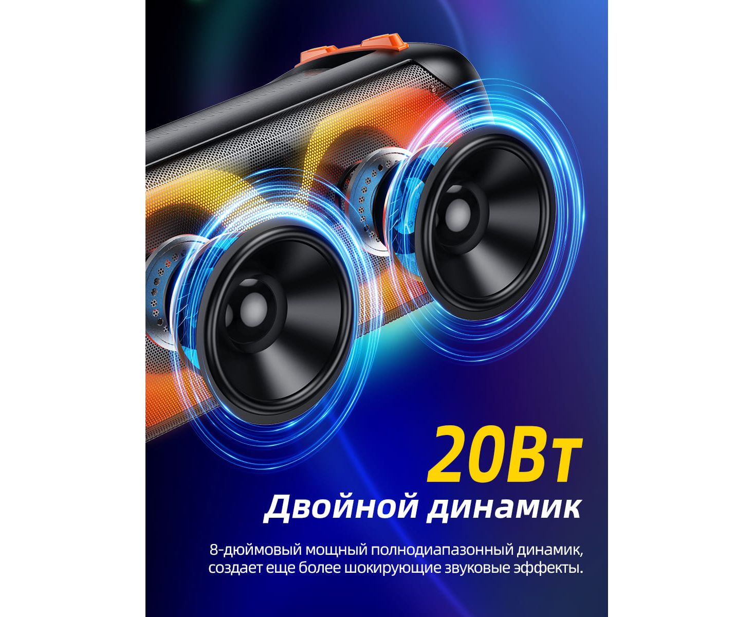 Поддерживает BT, TF-карту, USB-накопитель, AUX, FM и другие режимы.