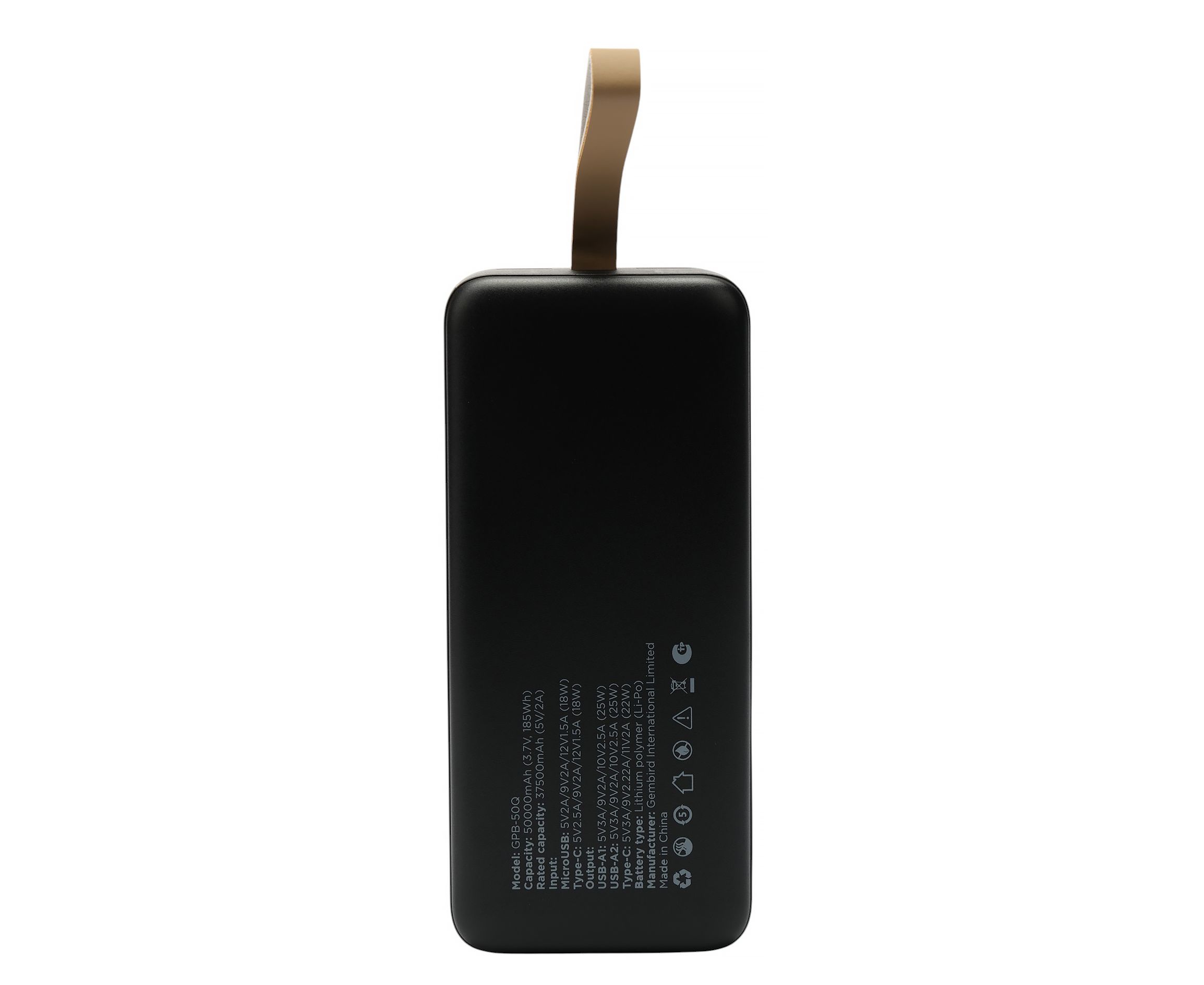 Портативный аккумулятор Gembird GPB-50Q 50000мАч, QC/PD, дисплей, черный