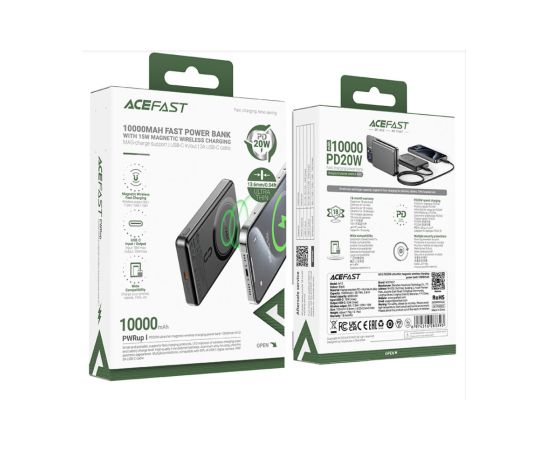 Power Bank ACEFAST M12 PD20W Ultra-thin Magnetic Wireless Charging Power Bank 10000mAh Black