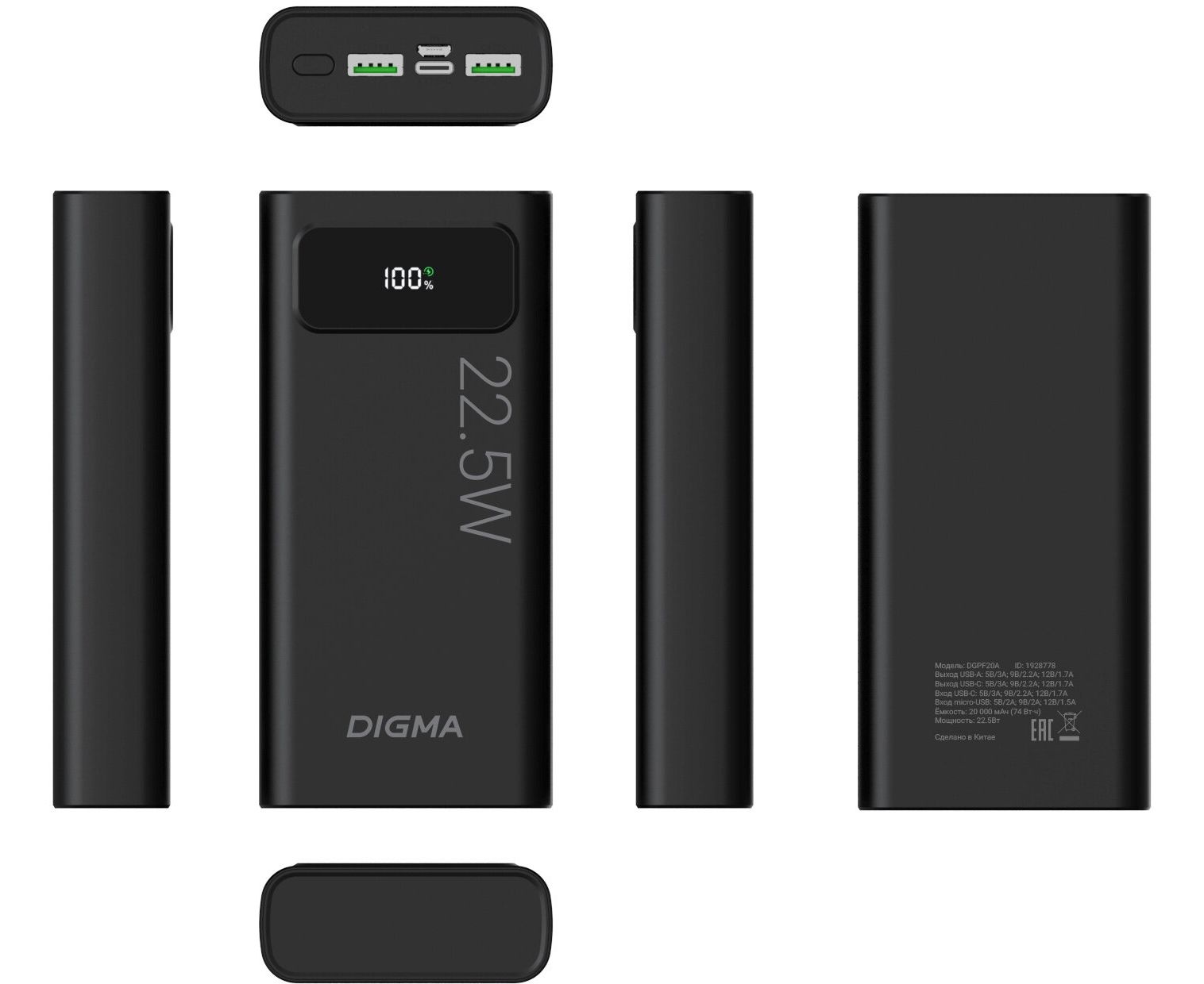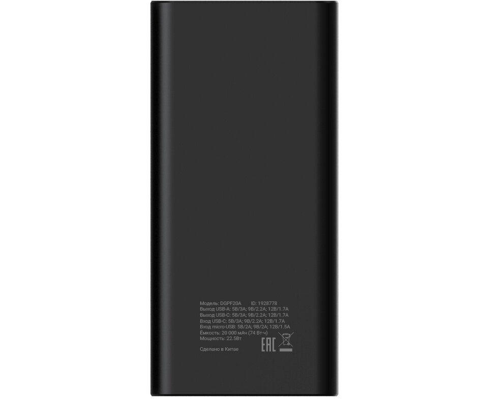Power Bank Digma DGPF20A (DGPF20A22PBK), 20000мAч черный