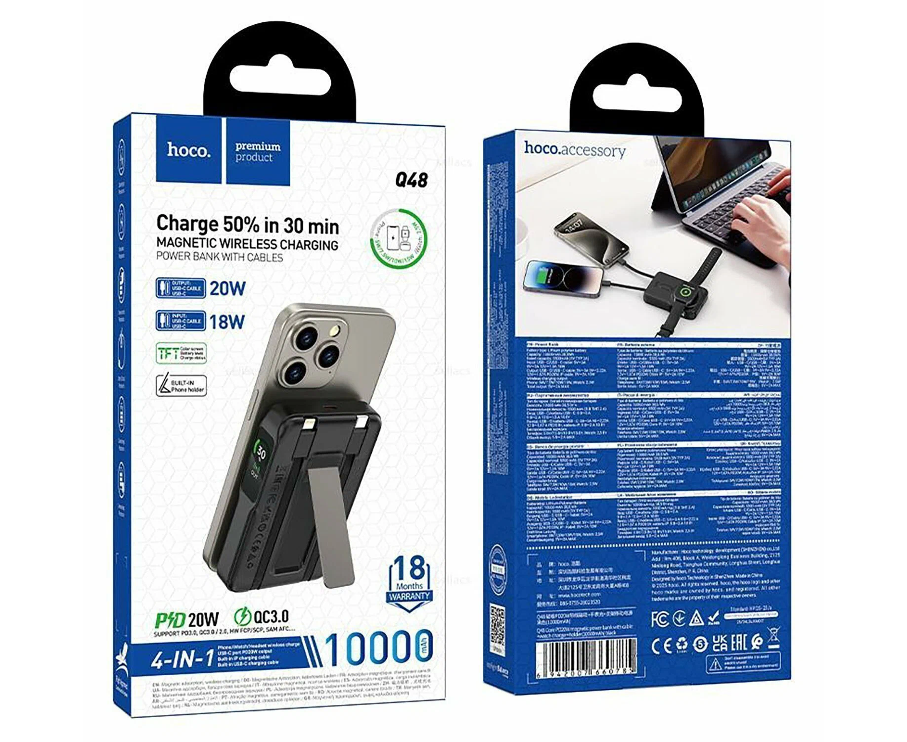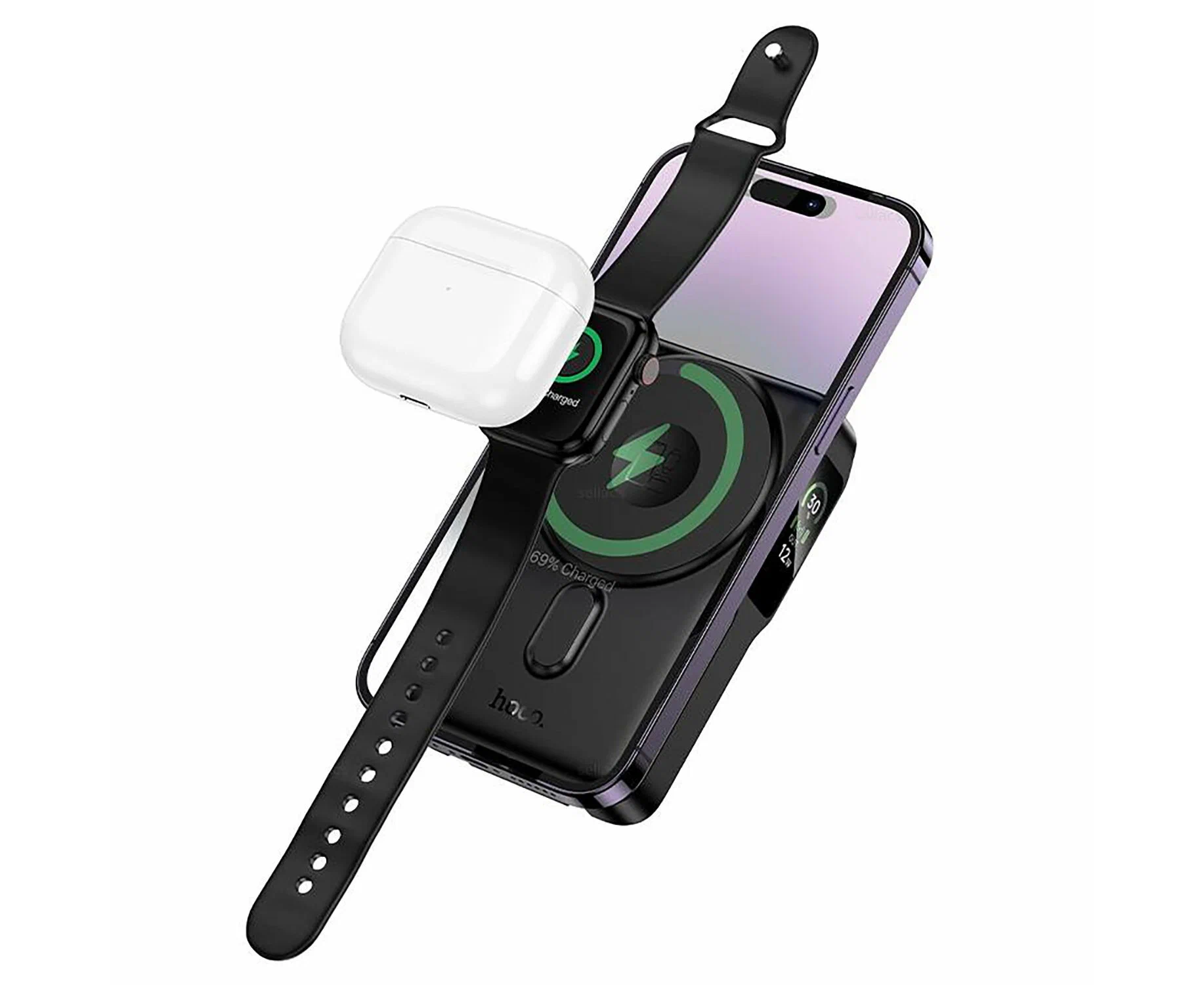 Power bank HOCO Q48 Core PD20W magnetic with cable+watch charger+holder 10000mAh Black