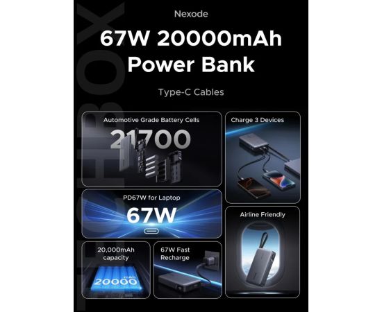 Аккумулятор имеет три порта: один порт Type-A и один порт USB-C и встроенный кабель USB-C , что позволяет одновременно заряжать несколько устройств без каких-либо ограничений. Это особенно удобно во время путешествий или длительных поездок, когда доступ к электросети ограничен. Пауэрбанк лёгкий и компактный, что делает его идеальным спутником для активного образа жизни.