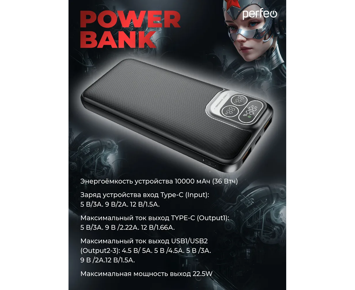 Powerbank Perfeo Atomic Age PF_E1474 10000mAh Black