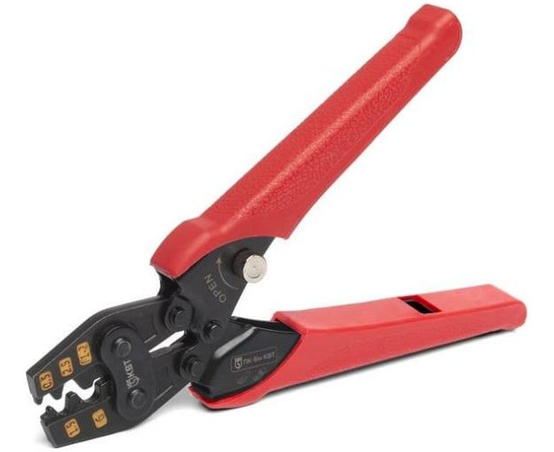 Пресс-клещи КВТ ПК-6м 78865 удобны в использовании за счет использования прочных накладок и храповика.