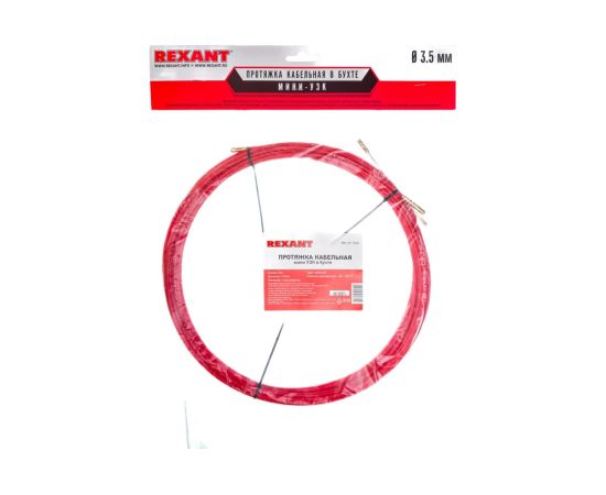 Кабельная протяжка (мини УЗК в бухте, стеклопруток, d=3,5мм, 20м, красная) REXANT 47-1020 используется для протягивания кабелей в трубах или стояках конструкций без открытого доступа. Изделие выполнено с защитой из ПНД высокой плотности и оборудовано токонепроводящим прутком.