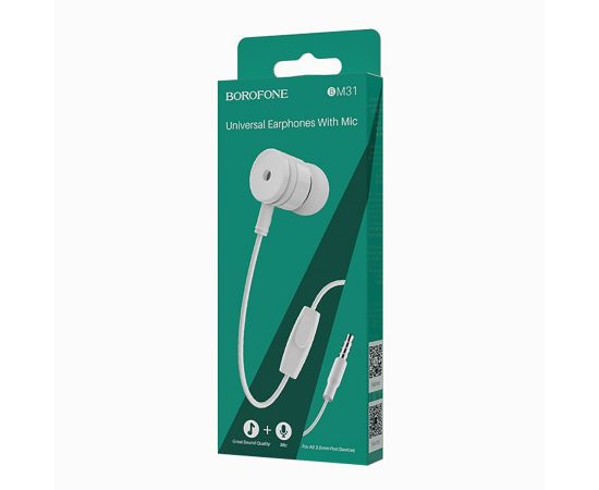 Проводные наушники с микрофоном внутриканальные Borofone BM31 Mysterious, 3.5 Jack (white)