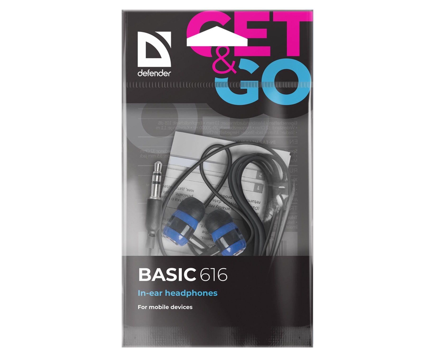 Проводные наушники с микрофоном внутриканальные Defender Basic-616 Jack 3,5 (black/blue) (212584)
