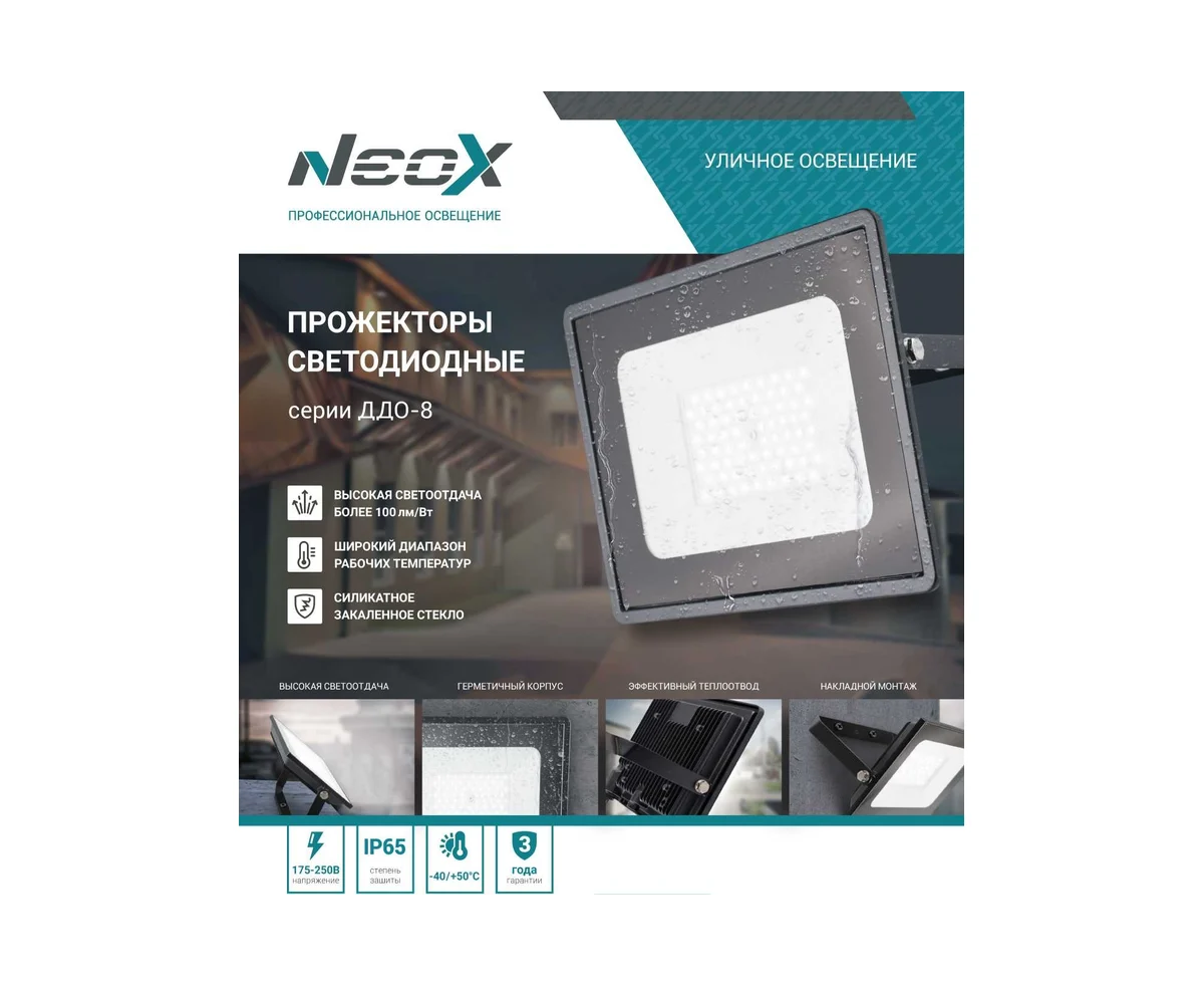 Прожектор NEOX ДДО-8 20W (2100lm) 6500K 6K 105x120x27