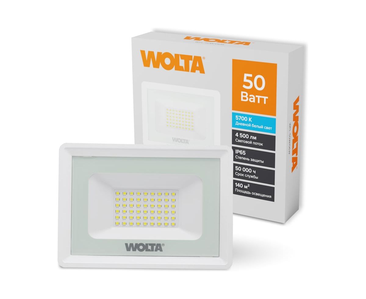 Прожектор светодиодный WOLTA WFL-50W/06W 50Вт 5700К IP65 Белый