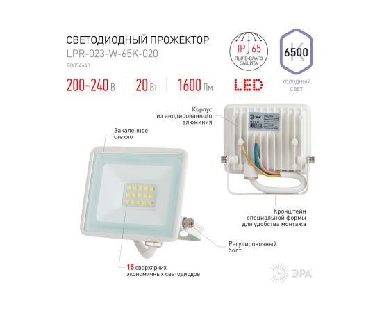 Технические характеристики ЭРА LPR-023-W-65K-020 20Вт 6500K 1600Лм белый Б0054640