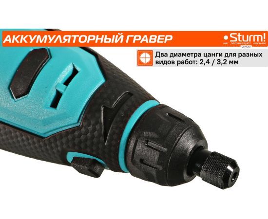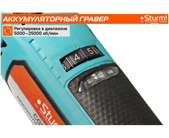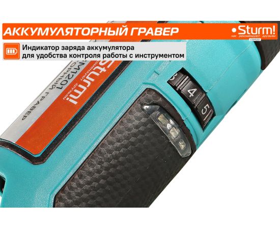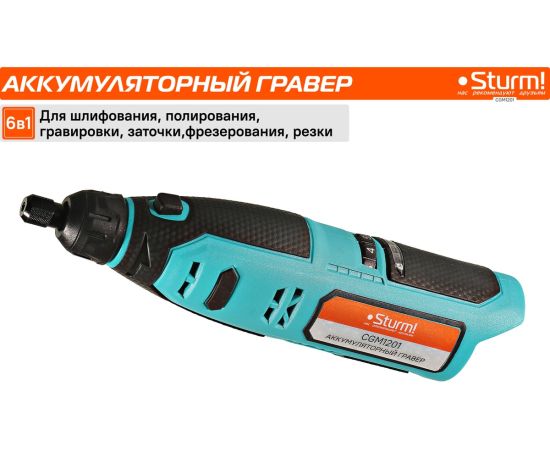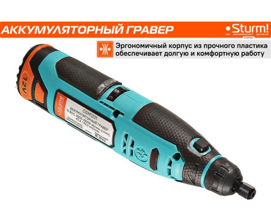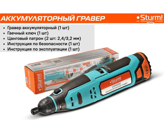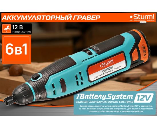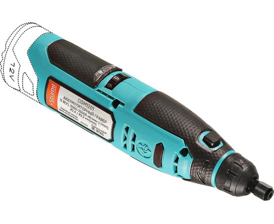 Гравер аккумуляторный Sturm! CGM1201— незаменим для шлифования, полирования, гравировки, заточки и многих других работ. Эргономичный корпус из прочного пластика обеспечивает долгую и комфортную работу в любых условиях эксплуатации и лучший контроль над инструментом благодаря малому весу и удобной для обхвата форме. Регулируемая в диапазоне 5000-25000об/мин скорость обеспечивают хороший контроль при работе с различными материалами. Производительный и компактный двигатель обеспечивает ровное поступательное ведение инструмента и позволяет уверенно производить обработку сложных поверхностей с достойным качеством. Система крепления насадок с использованием двух типовых диаметров фиксирующей цанги 2.4/3.2 мм облегчает подбор оснастки и значительно расширяет диапазон применения инструмента. Данная модель является частью системы 1BatterySystem12V и совместима со всей линейкой аккумуляторного инструмента. Для Вашей выгоды модель поставляется без аккумулятора и зарядного устройства.