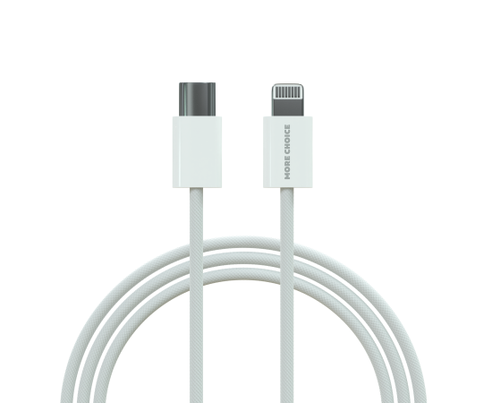 PURE Дата-кабель USB 3.0A PD 20W для Lighting 8-pin Type-C More choice K73i нейлон 1м (White)
