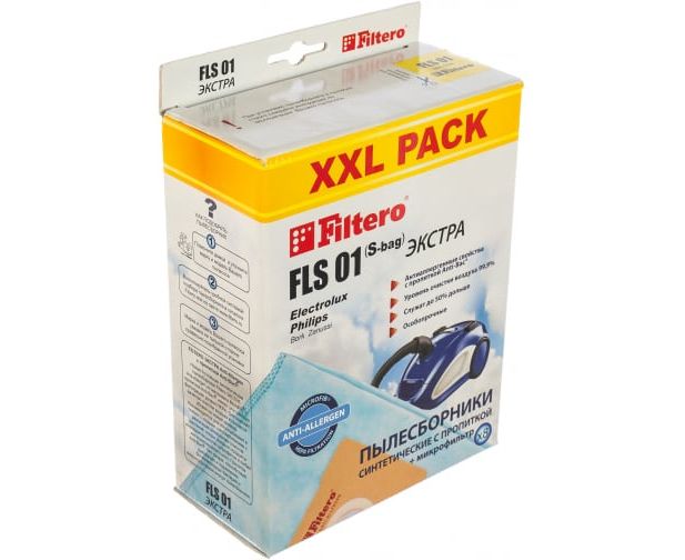 Мешок-пылесборник FILTERO FLS 01 XXL PACK Экстра (8 шт.) 05569 предназначен для бытовых пылесосов Electrolux, Philips, Bork и Zanussi. Произведен из пятислойного синтетического микроволокна MicroFib, что гарантирует высокую прочность и сохранение мощности всасывания на протяжении всего срока эксплуатации. Данный пылесборник собирает до 50% больше пыли, чем бумажный, и обеспечивает уровень очистки воздуха НЕРА. Рекомендуется для людей, страдающих аллергией и заболеваниями дыхательных путей, благодаря антибактериальной пропитке Anti-Bac, которая защищает от аллергенов и угнетает размножение микробов. Поставляется в комплекте с микрофильтром.