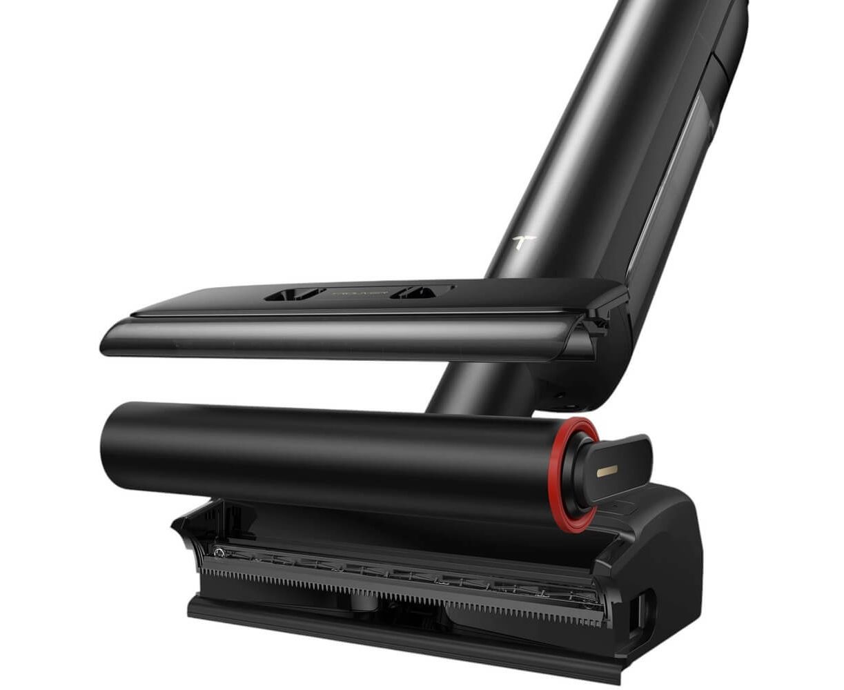 высокоскоростной двигатель с частотой вращения 104000 об/мин, автоматическая самоочистка (промывка щётки при температуре 90 °C, сушка валика при температуре 90 °C), технология Lie-Flat Raech (складная труба всасывания с наклоном на 180°), вращение на 90°, технология защиты от запутывания волос Tangle-Free, индикация концентрации пыли и процесса сушки валика