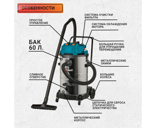 Пылесос строительный Bort BSS-2460-Storm (93417555)