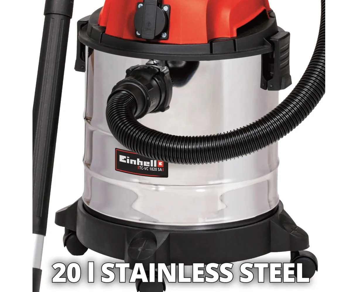 Строительный пылесос Einhell TC-VC 1820 SA 2342425 универсален в использовании. Подходит для сбора сухого и влажного мусора в жилых помещениях, мастерских, гаражах, подвалах. Имеет розетку для подключения электроинструмента мощностью до 2200 Вт.