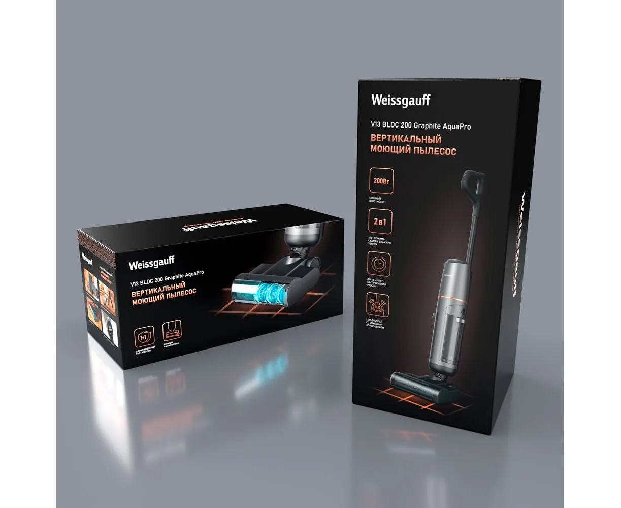 Пылесос вертикальный Weissgauff V13 BLDC 200 Graphite AquaPro