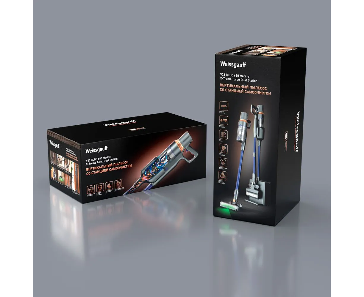 Пылесос вертикальный Weissgauff V23 BLDC 680 Marine X-Treme Turbo Dust Station