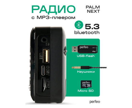 Радиоприемник цифровой Perfeo PALM FM+ 87.5-108МГц/ MP3 / USB / MicroSD