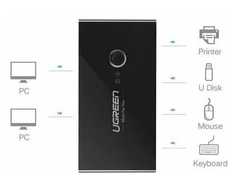 Разветвитель UGREEN US216 30768 2 In 4 Out USB 3.0 Sharing Switch Box Black