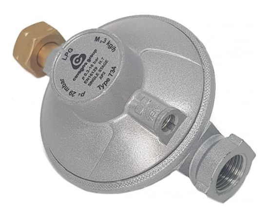 Регулятор давления газа typ 734, 3 кг/ч Cavagna Group 7314900156 предназначен для бытового применения. Оснастка обеспечивает фиксированное давление газа, поступающего из баллонов, на потребляющем оборудовании. Производительность – 3 кг/ч.