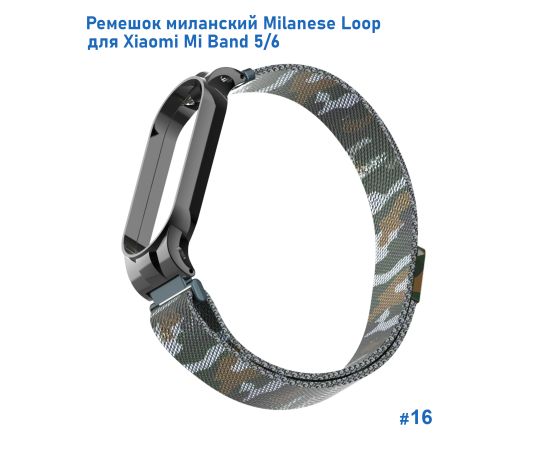 Ремешок миланcкий из нержавеющей стали Great Case Milanese Loop для Xiaomi Mi Band 5/6, 260мм, на магните, камуфляж+армейский (16)