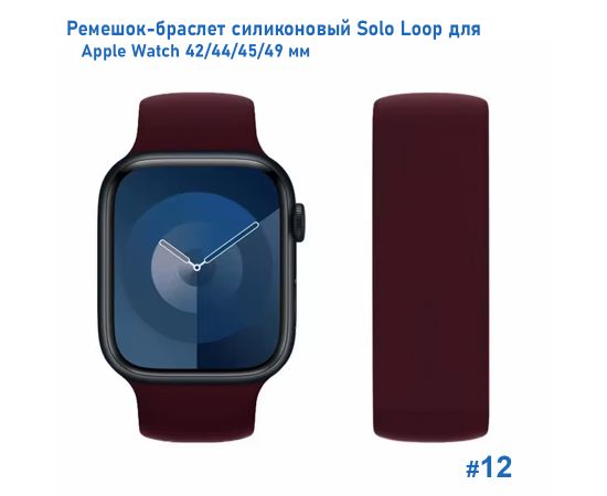 Ремешок-браслет силиконовый Great Case Solo Loop для Apple Watch 42/44/45/49 мм, L(155мм), бордовый (12)