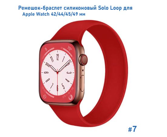 Ремешок-браслет силиконовый Great Case Solo Loop для Apple Watch 42/44/45/49 мм, L(155мм), красный (7)