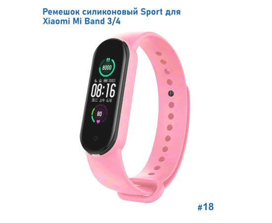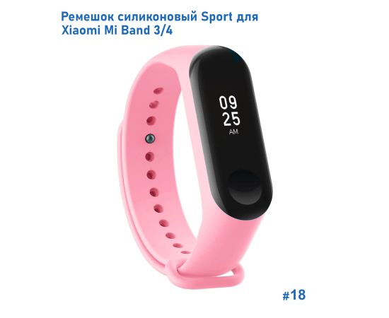 Ремешок силиконовый Great Case Sport для Xiaomi Mi Band 3/4, 250мм, на кнопке, светло-розовый (18)