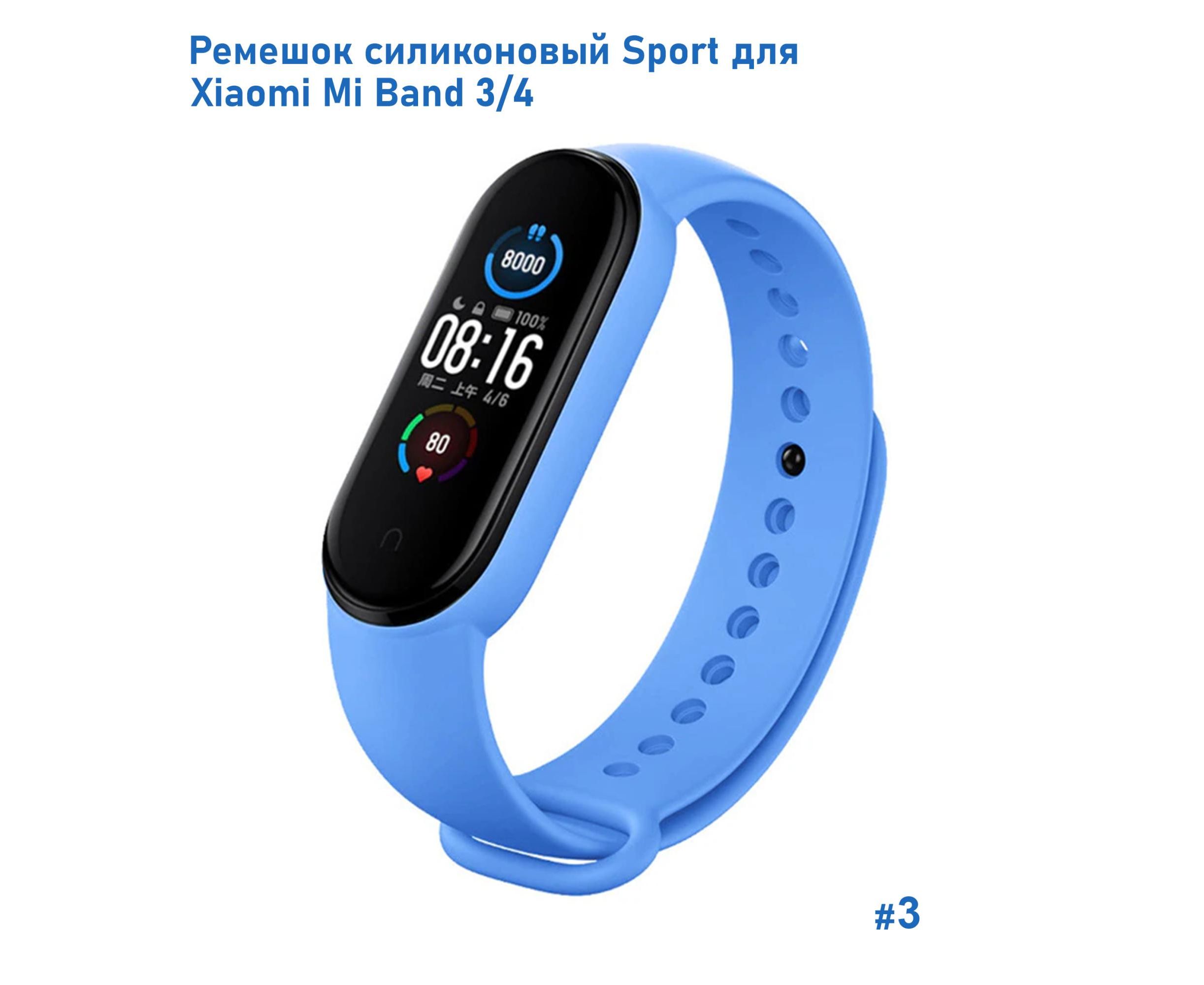 Ремешок силиконовый Great Case Sport для Xiaomi Mi Band 3/4, 250мм, на кнопке, лазурный (3)