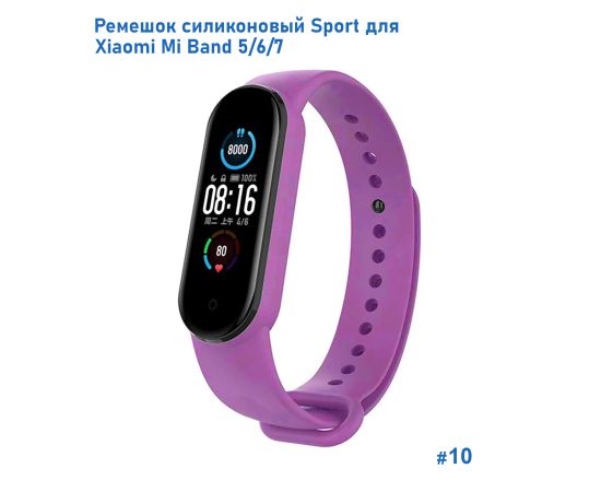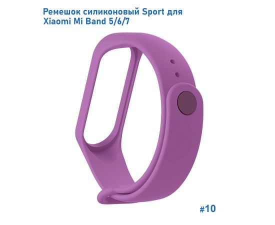Ремешок силиконовый Great Case Sport для Xiaomi Mi Band 5/6/7, 250мм, на кнопке, сиреневый (10)