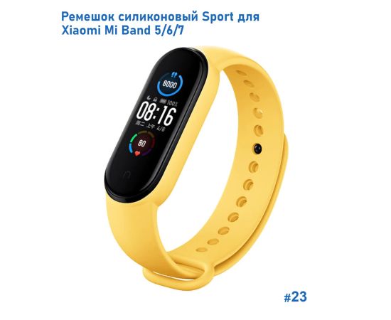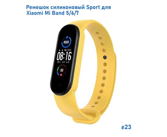 Ремешок силиконовый Great Case Sport для Xiaomi Mi Band 5/6/7, 250мм, на кнопке, желтый (23)