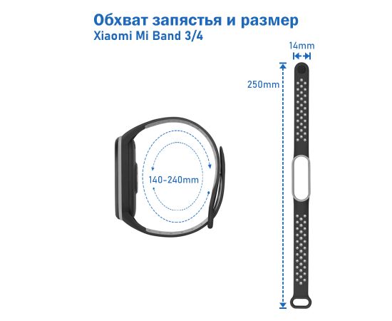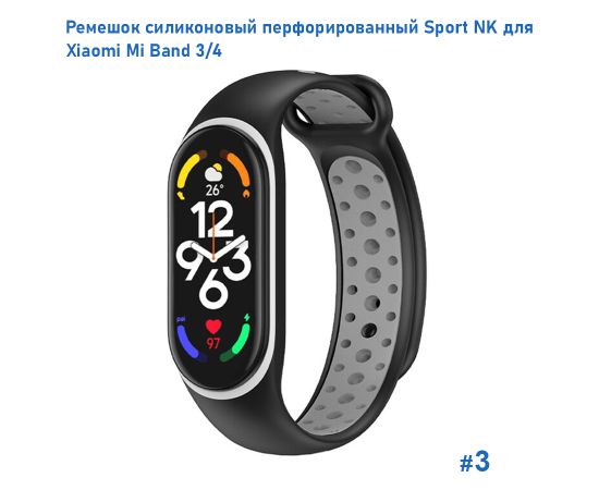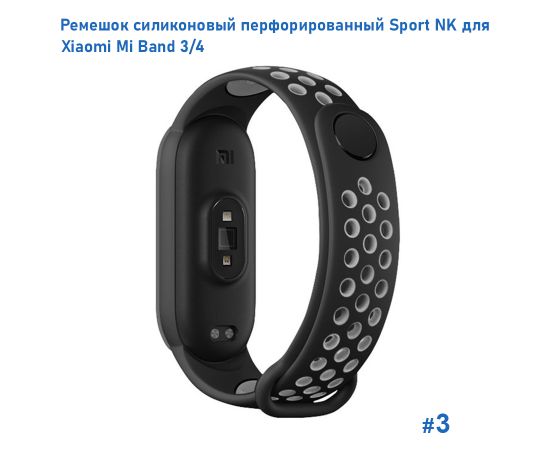 Ремешок силиконовый перфорированный Great Case Sport NK для Xiaomi Mi Band 3/4, 250мм, на кнопке, черный+серый (3)