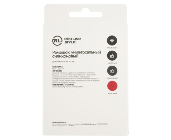 Ремешок для часов универсальный силиконовый, 22 mm, красный