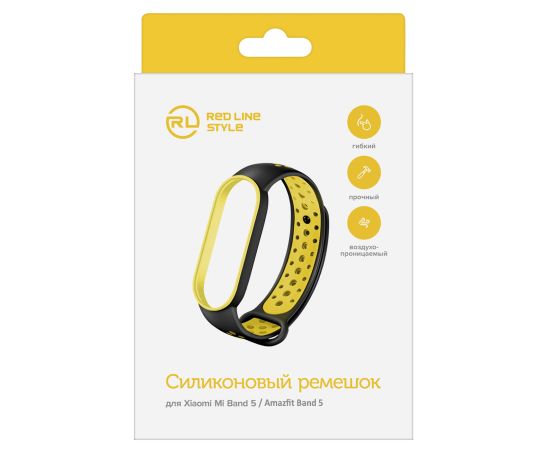 Ремешок двухцветный для фитнес-браслета Xiaomi Mi Band 5/ Mi Smart Band 6, черный с желтым