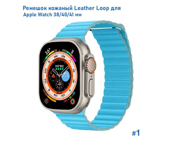 Ремешок кожаный Great Case Leather Loop для Apple Watch 38/40/41 мм, 225мм, на магните, голубой (1)
