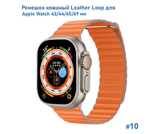 Ремешок кожаный Great Case Leather Loop для Apple Watch 42/44/45/49 мм, 225мм, на магните, оранжевый (10)
