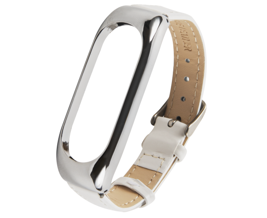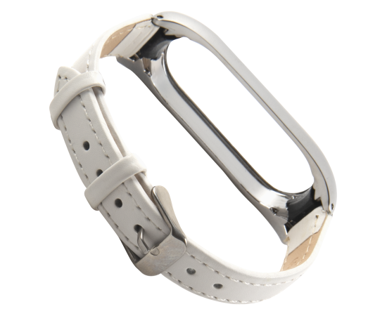 Ремешок кожаный для фитнес-браслета Xiaomi Mi Band 5/ Mi Smart Band 6, белый
