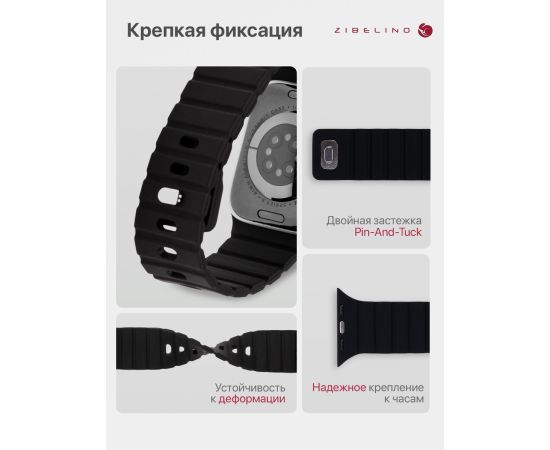 Силиконовый ремешок для Apple Watch с застежкой pin-and-tuck (с металлическим "гвоздиком"), усиленный магнитами.
