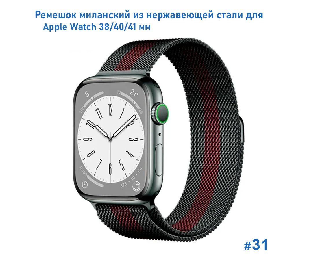 Ремешок миланcкий из нержавеющей стали Great Case Milanese Loop для Apple Watch 38/40/41 мм, 235мм, на магните, черный+красный (31)
