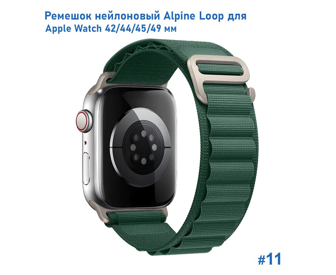 Ремешок нейлоновый Great Case Alpine Loop для Apple Watch 42/44/45/49 мм, 235мм, на застежка, темно-зеленый (11)
