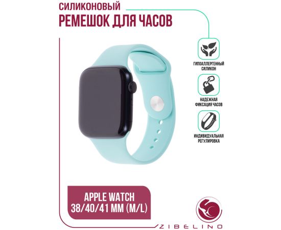 Ремешок силиконовый для смарт часов Apple Watch 38мм, 40мм, 41мм (размер M/L) бирюзовый (Эпл Вотч 38 мм 40 мм 41мм)