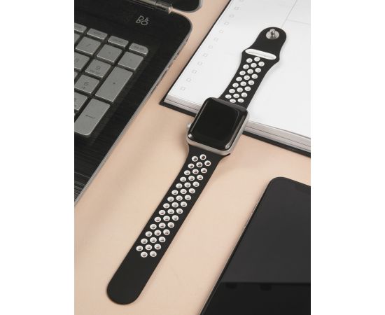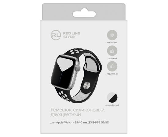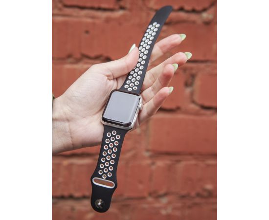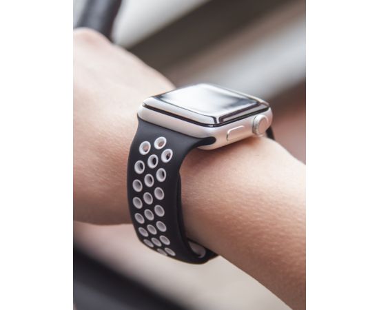 Ремешок силиконовый двухцветный для Apple watch - 38-40 mm (S3/S4/S5 SE/S6), черно-белый