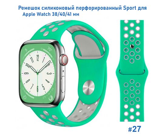 Ремешок силиконовый перфорированный Great Case Sport NK для Apple Watch 38/40/41 мм, 225мм, на кнопке, зеленый+серый (27)