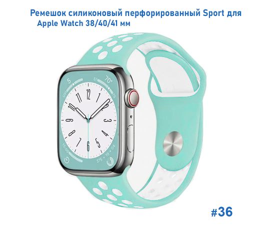 Ремешок силиконовый перфорированный Great Case Sport NK для Apple Watch 38/40/41 мм, 225мм, на кнопке, бледно-бирюзовый+белый (36)
