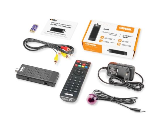 Приемник цифровой эфирный CADENA CDT-2311 MINI со встроенным тюнером DVB-T2, корпус из ABS пластика. Предназначен для приема открытых каналов эфирного вещания высокой четкости. В приемник встроен USB мультимедиа интерфейс, с помощью которого вы можете проигрывать/прослушивать музыку, фото, видеофайлы. Имеет полный набор стандартных операций: запись телепередач и запись события по расписанию на USB носитель; отложенный просмотр; телетекст; телегид; родительский контроль.