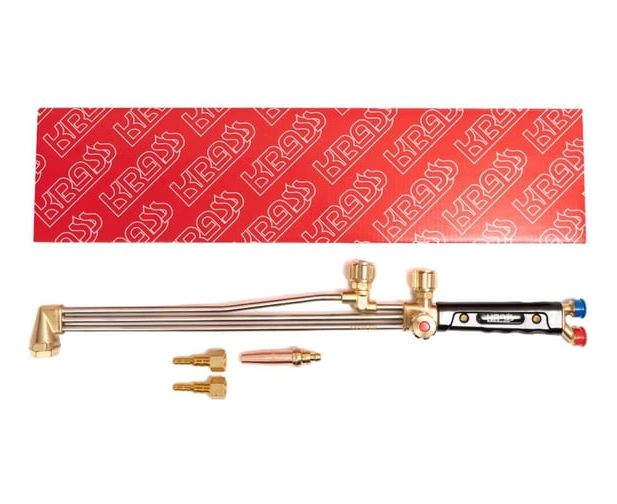 Резак трехтрубный универсальный KRASS-535 2278588 вентильный, внутрисоплового смешения предназначен для ручной газокислородной резки (раскроя) листового и сортового металла из низкоуглеродистых сталей толщиной до 300 мм.